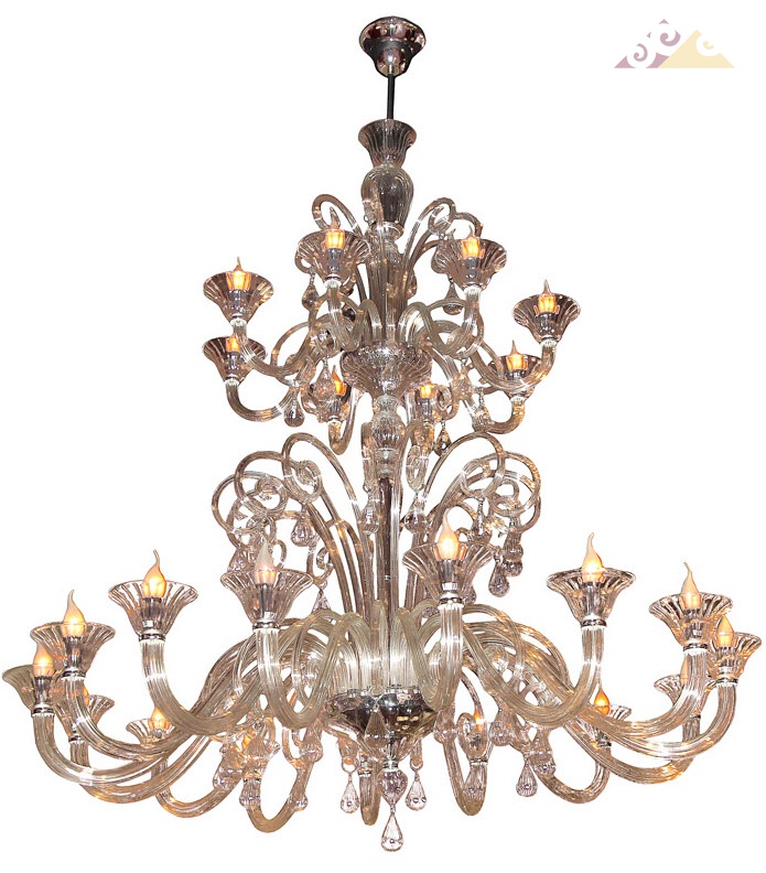 Неповторимая дизайнерская трехуровневая люстра. Изготовлена из стекла обработанного вручную. Плавные завораживающие изгибы и линии. Блеск и эффект.