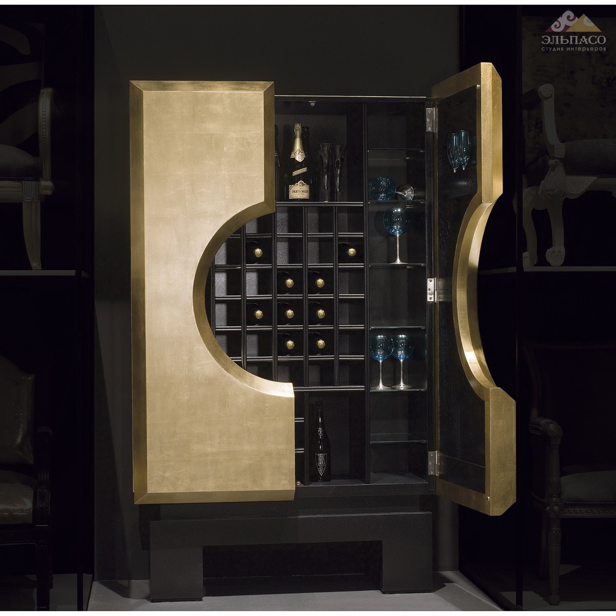 Стильный бар с распашными дверцами необычного дизайна выполнен из массива дерева в отделке с эффектом кракле. Бар продуман до последней детали в плане функциональности и организации внутреннего пространства. Доступны другие варианты цвета, согласно каталогу производителя.