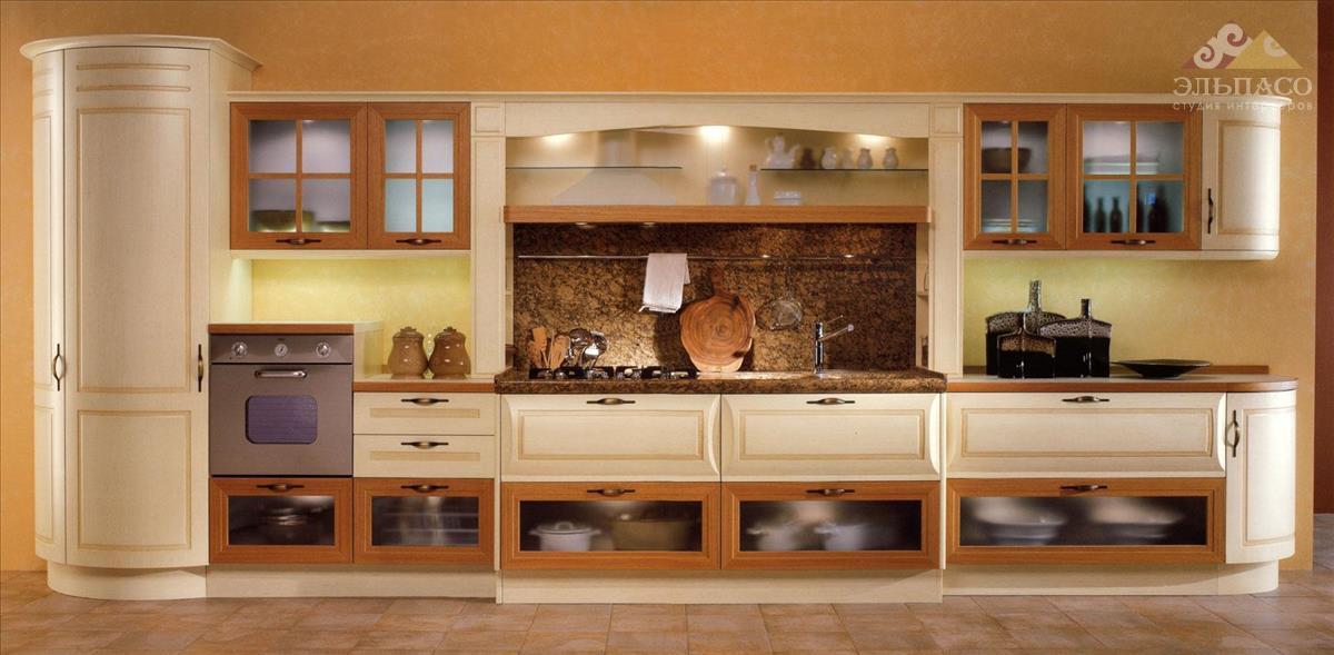 Эта модель кухни из линейки Cucine Elpaso заявляет о себе своими мягкими и круглыми формами. Изогнутости или закруглённости позволяют больше обозначить индивидуальность гостеприимной среды, где плавность линий является комфортом, а размеры и пропорции учитывают эргономику.