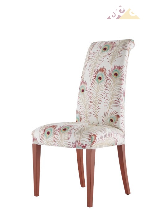 Инновационный подход к созданию дизайна этого стула достигли удивительного эффекта. Смелые, яркие сочетания цветов на текстиле, с принтом, в виде перьев павлина. Деревянные ножки, с матовой поверхностью. Все это делает данный стул более привлекательным.