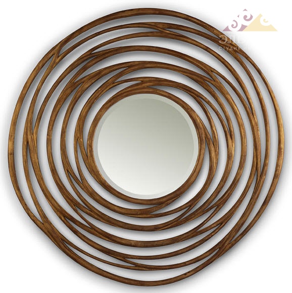 Изысканное настенное зеркало с мастерски выполненной ручной резьбой по поверхностям красного дерева. Декорировано золотым лаком.