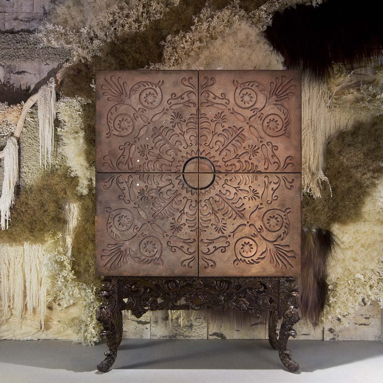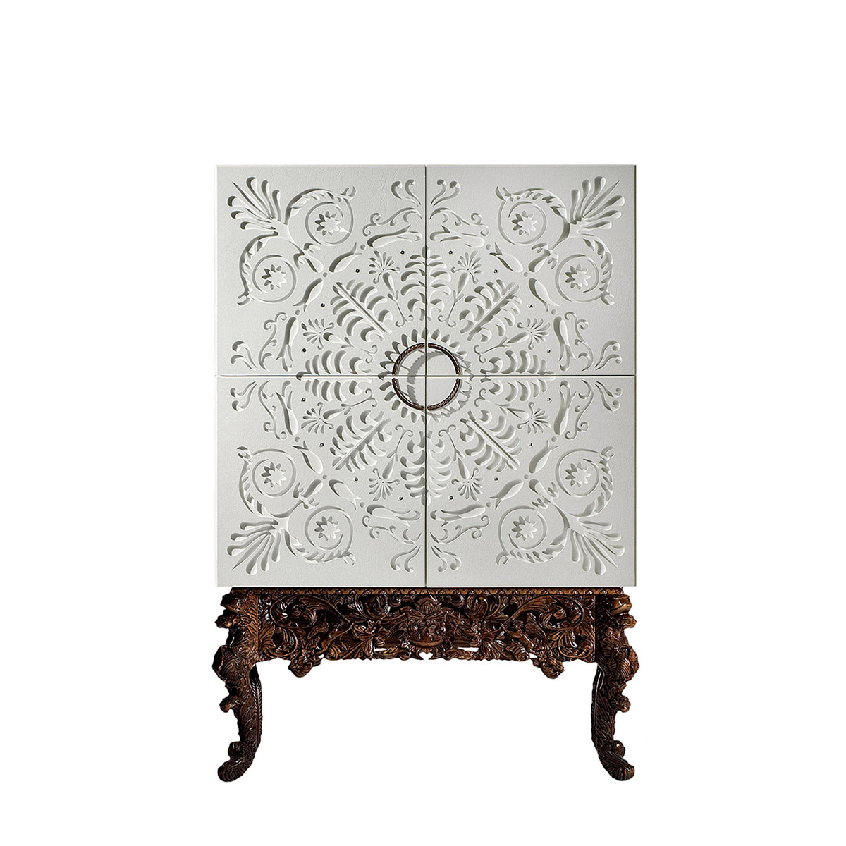 Высота:211 Luxury bar on hand-carved, curved legs. The model is carved from solid wood, and decorated with carvings on the façade. It will transform and enhance an interior. Available in other colors, accordin to the manufacturer's catalog.