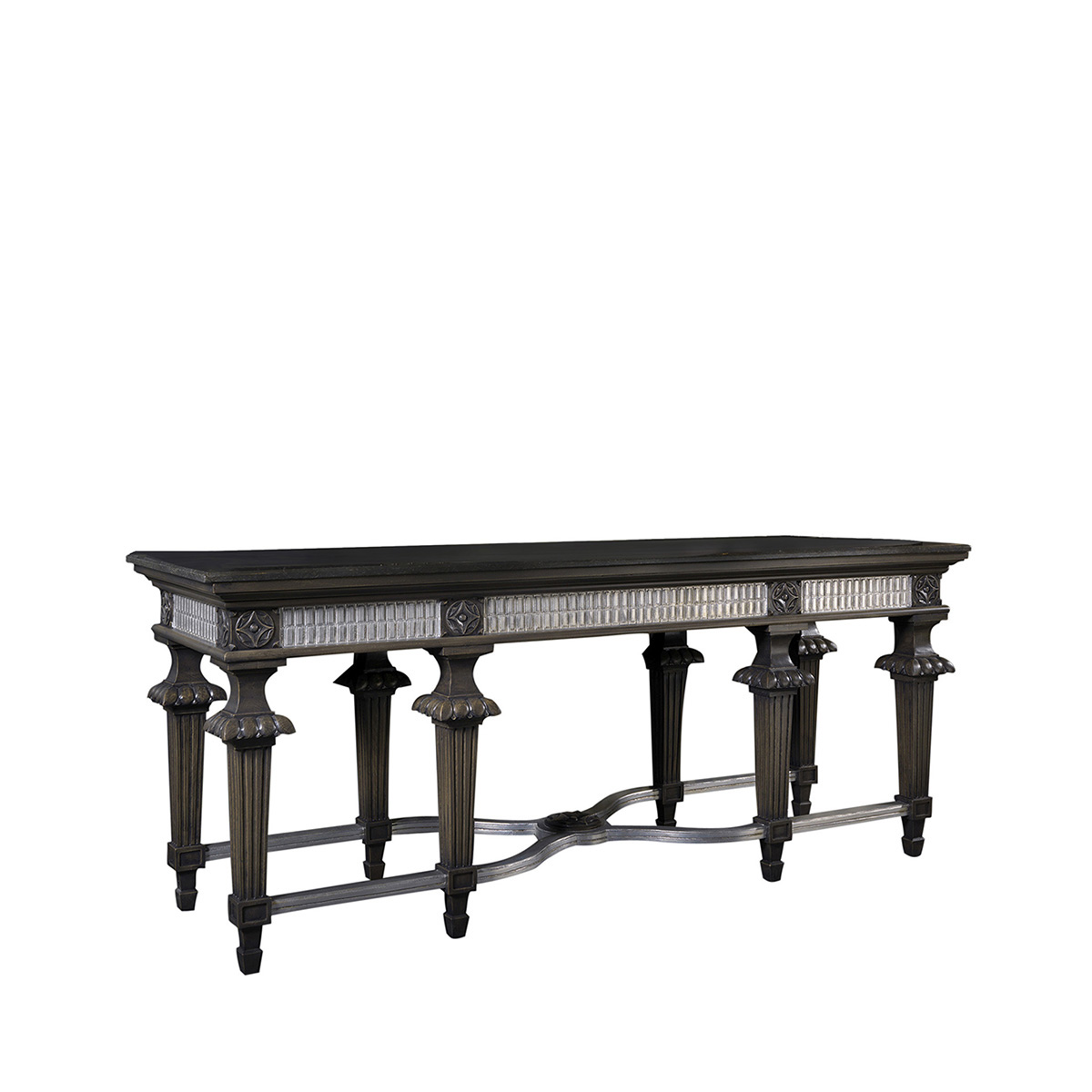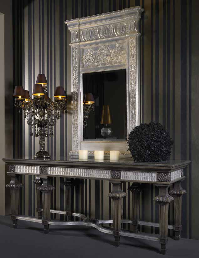 Высота:82 Sumptuous console on notched legs. Designed with attention to the tiniest details in terms of functionality and ergonomics, this model is hand-carved from solid wood and topped with polished marble. Color palette as per catalog.