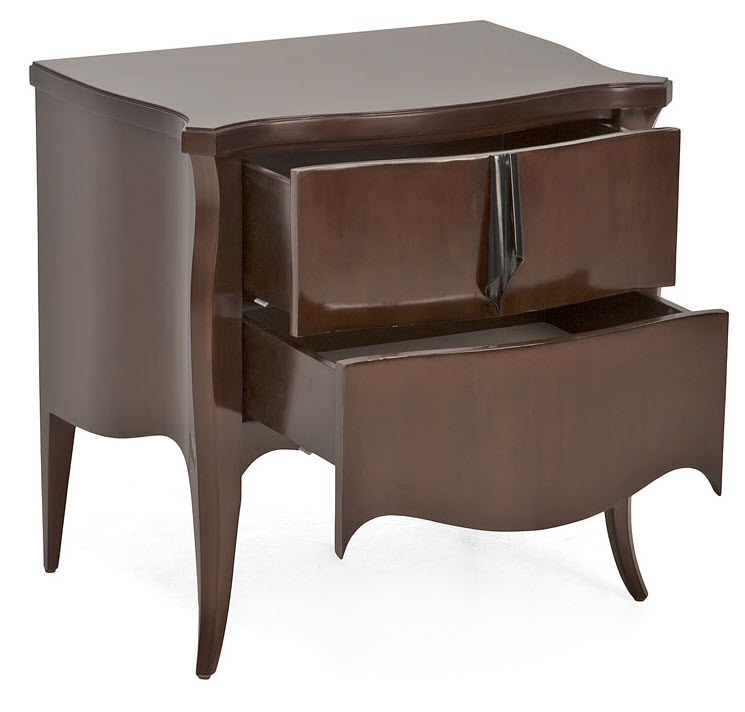 Высота:70 Refined nightstand for the bedroom. Crafted from mahogany, hand-carved surface. The model is equipped with two deep drawers, and decorated with detailed scrollwork handles.
