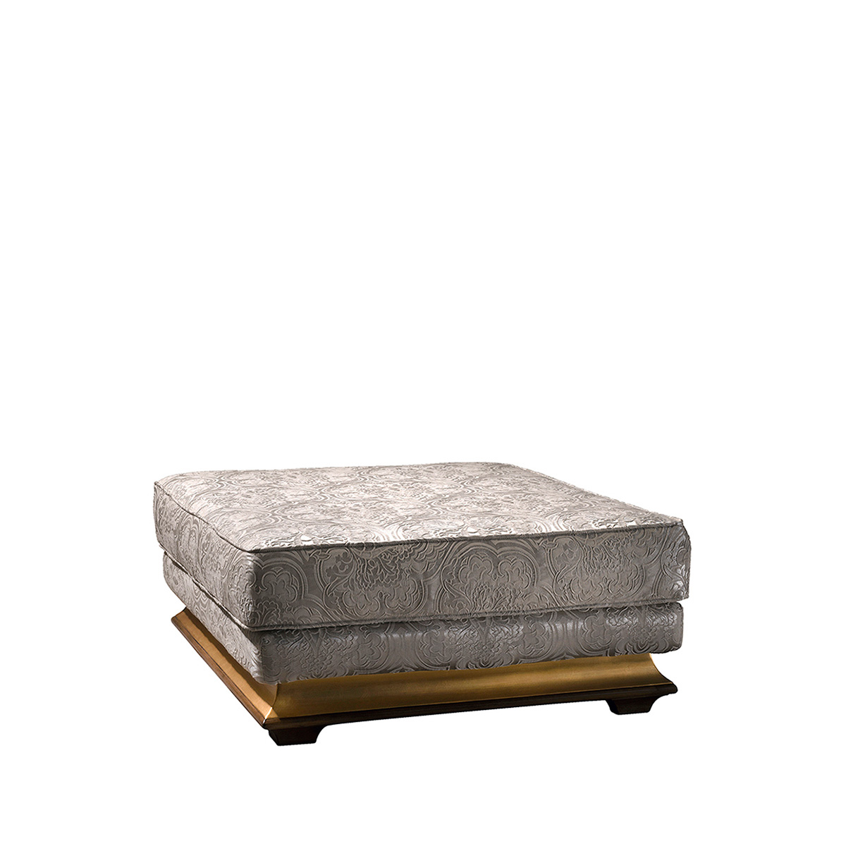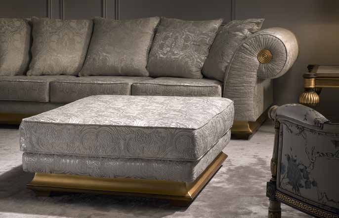 Высота:43 Square puff for the living room. The model is made of solid wood, finished with walnut and gold. Fabric CHELSEA MARFIL F2391 upholstery. Perfect instance of impeccably made designer furniture. Available in other colors, according to the catalog.