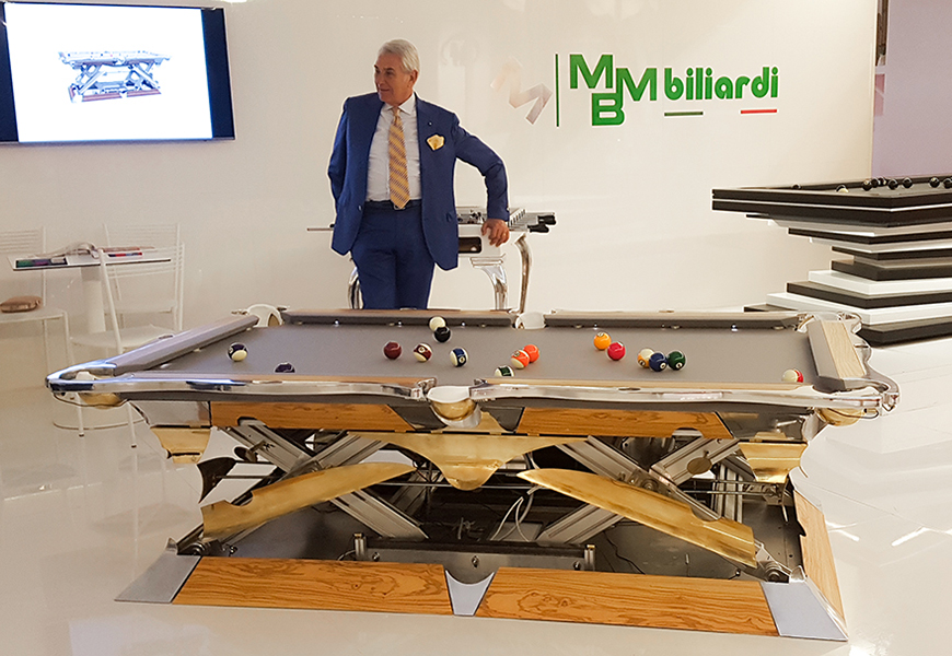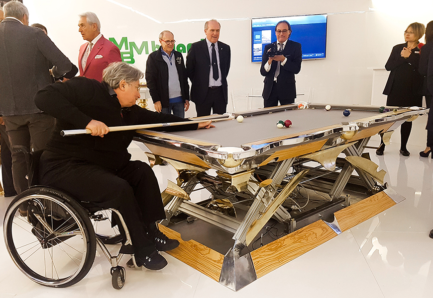 Revolution от MBM Billiardi, была создана, чтобы дать мировым бильярдам футуристические функции, уникальные по своим свойствам. M999 - это бильярд с искусственным интеллектом, с программным обеспечением для голосовых команд и двигателем в 6139 Вт, способным полностью стабилизировать бильярд на разных высотах, чтобы каждый игрок мог адаптировать стол под свои индивидуальные возможности.