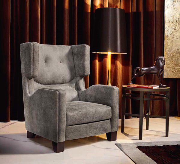1. Кресло от фабрики Smania «Corinne». Модель повышенного комфорта снабжена высокой спинкой, декоративной подушкой, поддерживающей поясницу, подлокотниками и верхней опорой. Ножки изготовлены из дерева венге. Обтянута вельветом серого тона. Так же возможна обтяжка различными видами кожи высокой износостойкости. Размеры изделия позволяют владельцам полностью ощутить все преимущества модели.