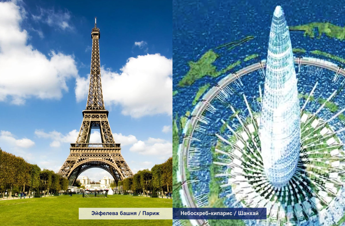 • Небоскреб высотой более километра (1228 метров) в Шанхае в форме кипариса.