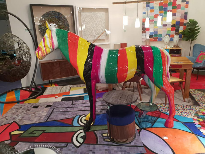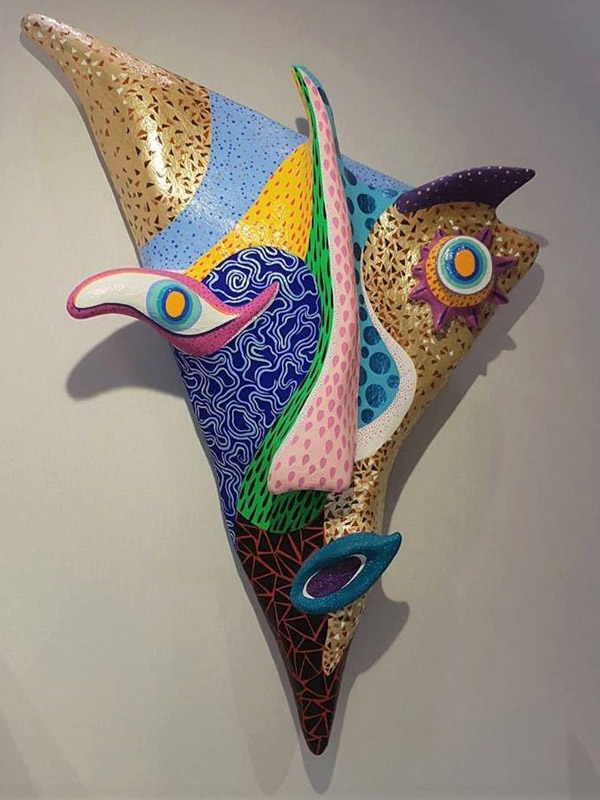 Главные мотивы выставки: животные Африки, птицы, заросли, фрукты, кактусы, рыбы, кораллы и даже золотые и разноцветные крабы.