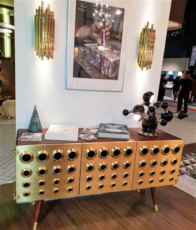 Популярностью пользуется «космо-стиль». Мы отдали предпочтение золотому космо-комоду c иллюминаторами из стекла.