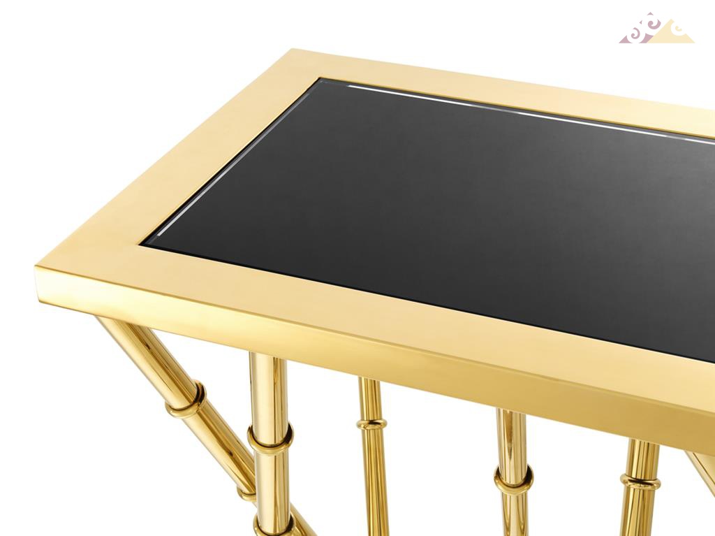 Консоль Cristiano фабрики Eichholtz, в Золотом цвете, со стеклянной столешницей - черного цвета.