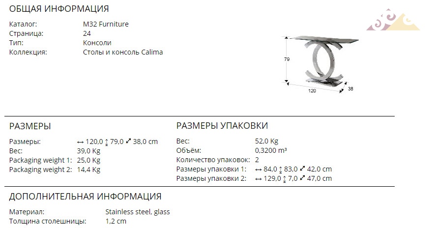 Высота:79 смКонсоль Schuller Calima Art.821437 с основанием из нержавеющей стали и столешницей из высокопрочного стекла толщиной 12 мм с полированной кромкой.