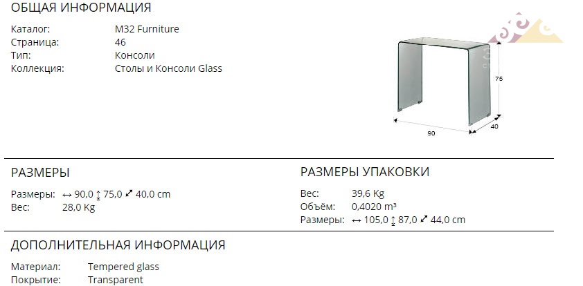 Высота:75 смКонсоль Schuller Glass Art.552431 из прозрачного изогнутого закаленного стекла толщиной 12 мм.
