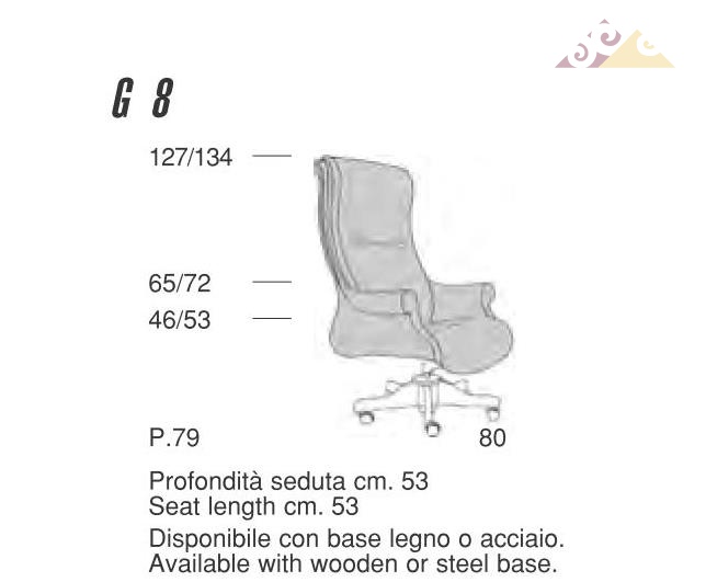 Красивое поворотное кресло с высокой спинкой и регулировкой высоты сидения, предназначенное для элитных кабинетов, из уникальной коллекции G8 от фабрики Mascheroni. Доступно с деревянной или стальной хромированной 5-спицевой базой на двойных нейлоновых роликах. Каркас выполнен из массива березы и стали. Рама покрыта пенополиуретаном с эластичными ремнями, полностью обтянутым натуральной кожей из ассортимента фабрики. Кресло оснащено поворотным механизмом Syncron. Каждый итальянский ручной продукт Mascheroni отмечен пластиной с выгравированной маркой «Mascheroni srl Made in Italy», которая подтверждает ее подлинность.