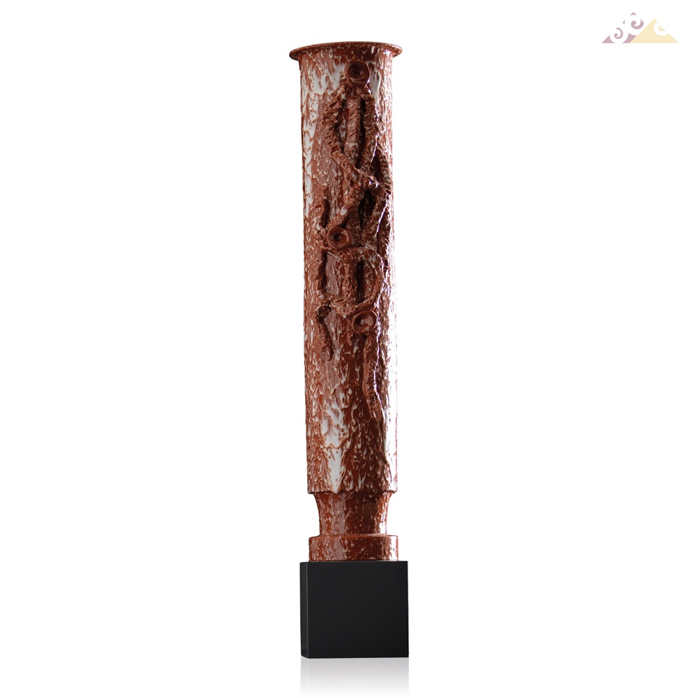 Декоративная ваза из майолика, выполненная ручной работай. Пьедестал из серого - лакированного дерева.