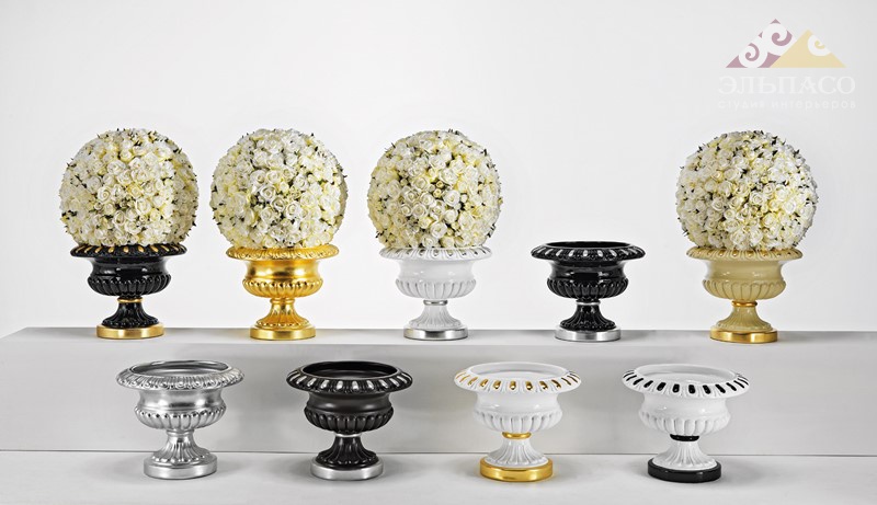 Стильная ваза на ножке в форме амфоры из уникальной коллекции мебели Accessories. Корпус выполнен из массива бука и покрыт глянцевым лаком с золотым или серебряным декором. Возможны варианты исполнения с полным покрытием из сусального золота или серебра. Может служить подставкой для великолепного шара из тканевых роз из коллекции фабрики VISMARA (цена шара по запросу)