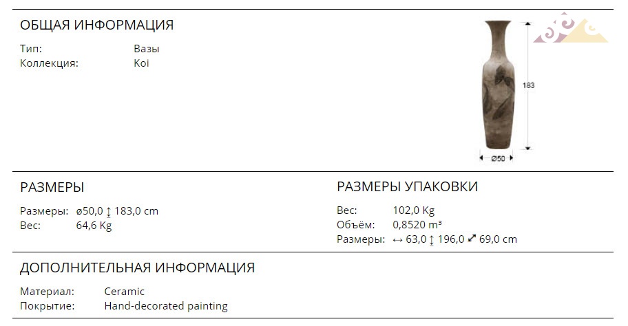 Высота:183 смВаза Schuller Koi Art.591208 керамическая, расписанная вручную.