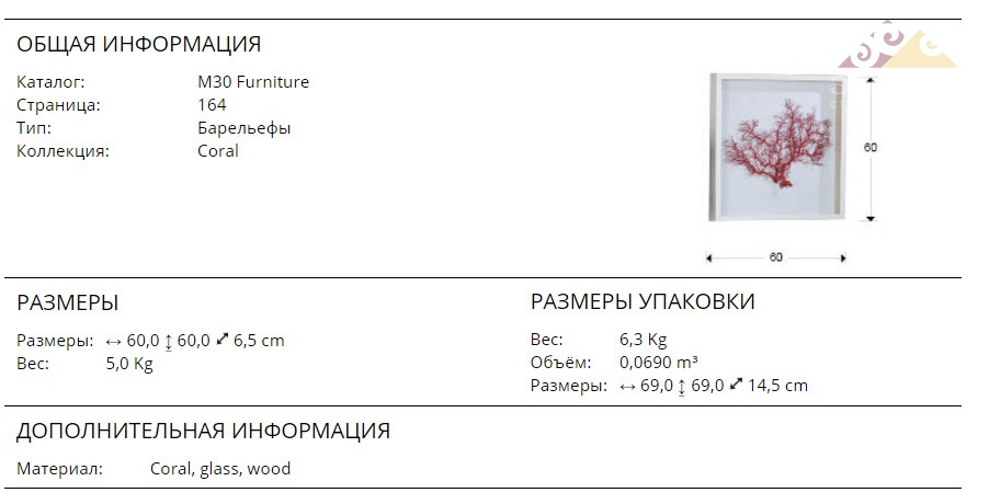 Высота:60 смКартина Schuller Coral Art.849512 - красный коралл под стеклом в раме из дерева, окрашенного в белый цвет.