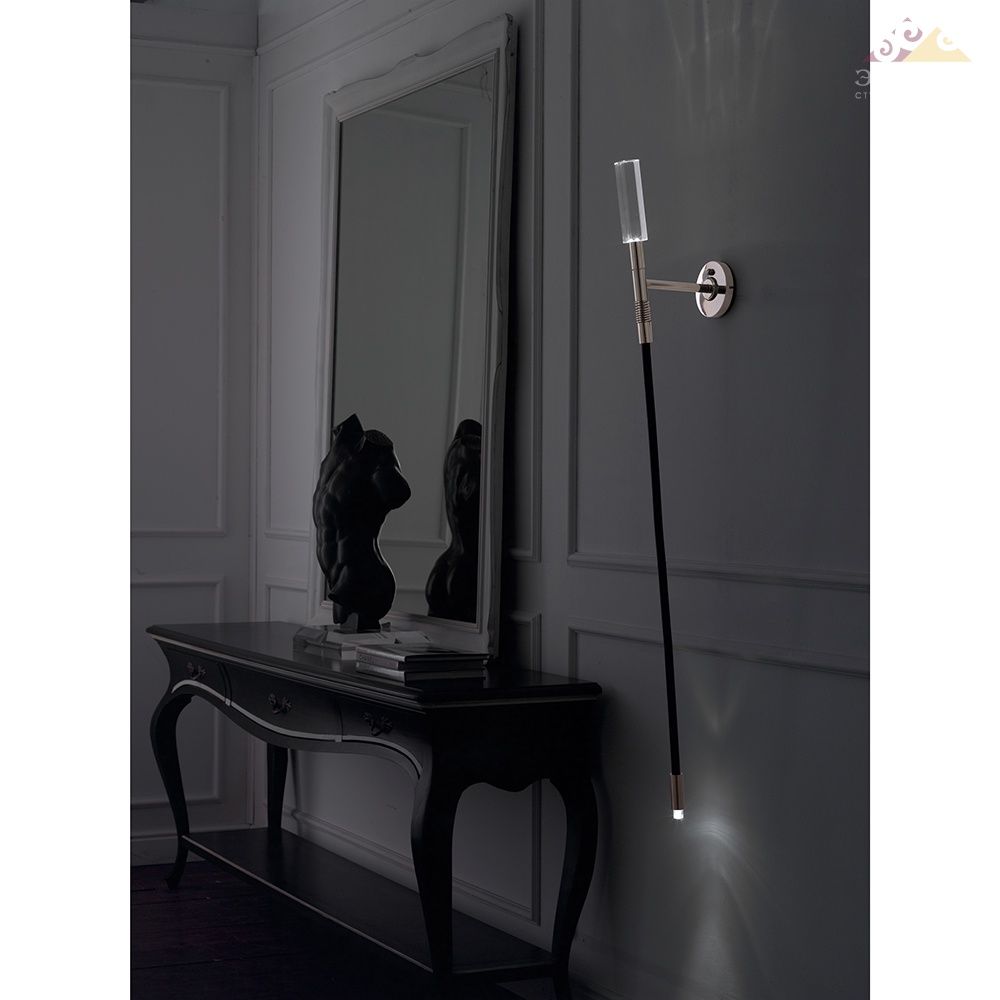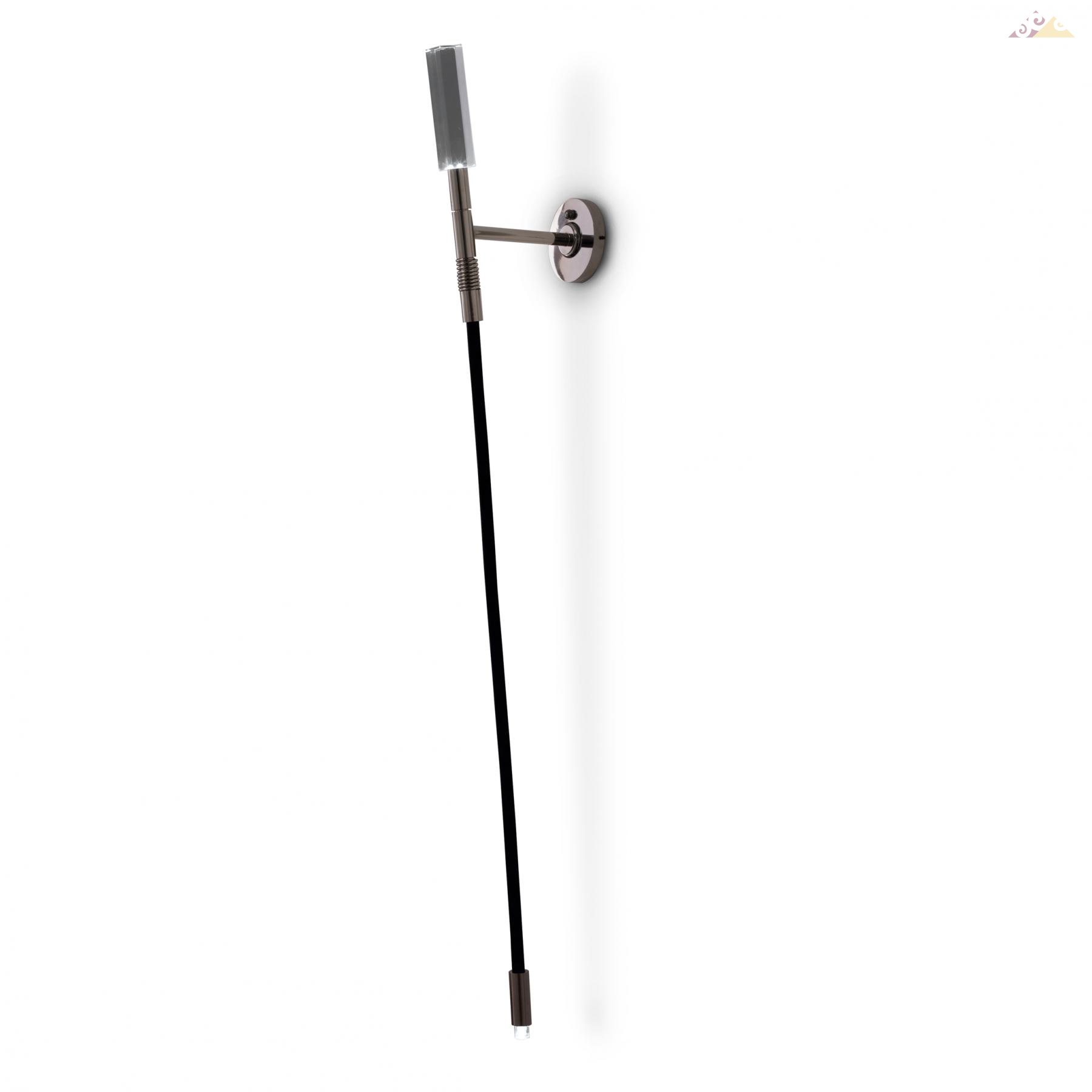 Настенный светильник с хромированной латунной структурой, черная каучуковая центральная трубка. Светодиодная подсветка. Верхняя часть: светодиодный - яркий 1,5W 12V-45 ° -K6500. Нижняя часть: светодиодный - яркий 0,25 Вт 12V-K6500-45 °.