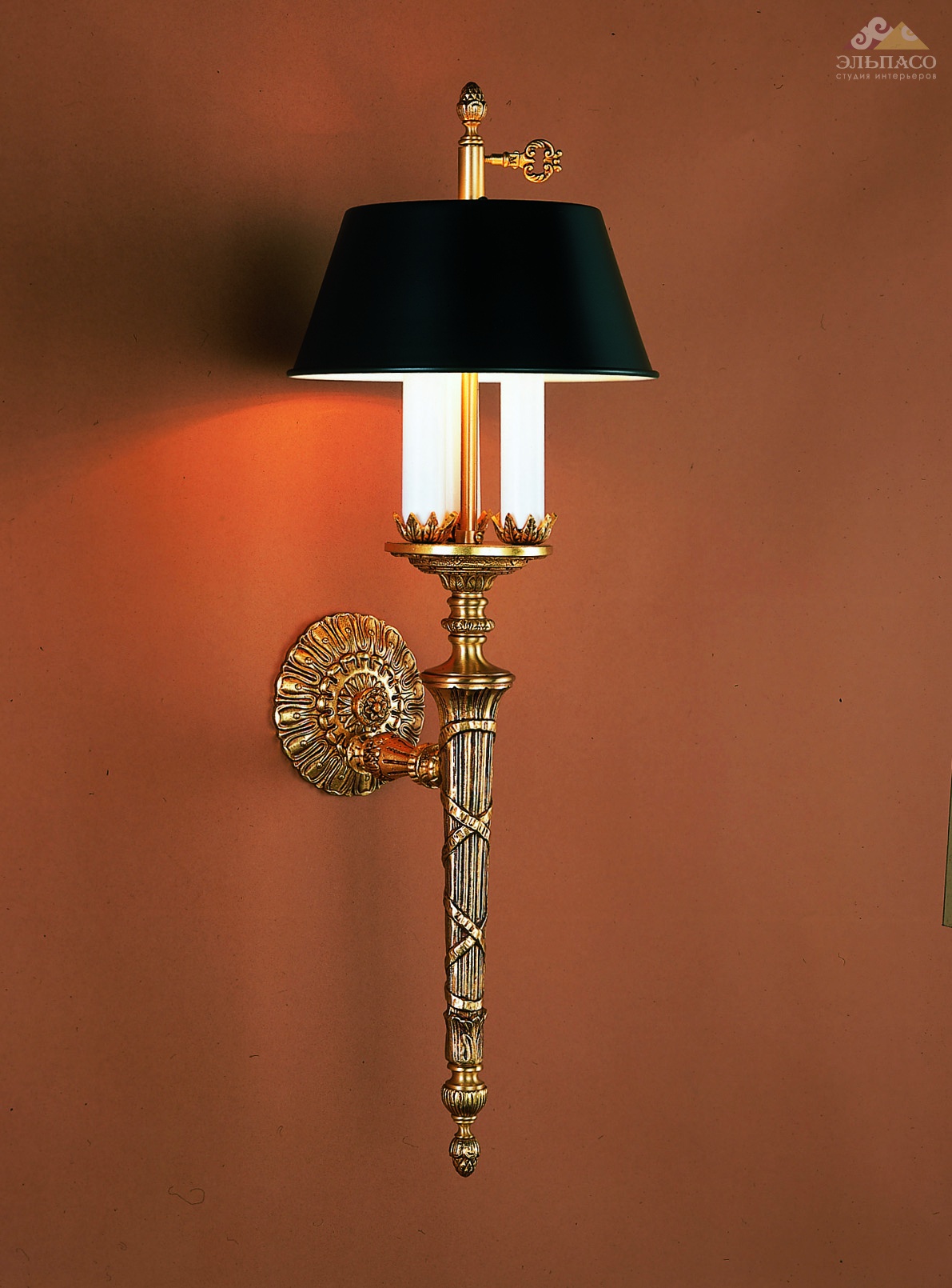 Изысканное бра Mariner Аrt.19388, на три лампочки стандарта Е14. Корпус модели изготовлен из литой бронзы. Поверхности полированы вручную и украшены классическими орнаментами. Элементы декора покрыты тонким слоем французского золота. Лампочки прикрыты абажуром черного цвета. Стиль, красота, величие..