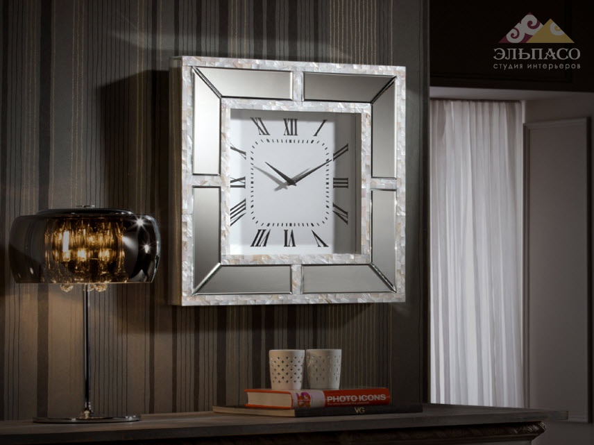 Высота:51 смНастенные часы Schuller Nacar Art.873614 в раме из зеркального стекла с фаской и полосок перламутра.
