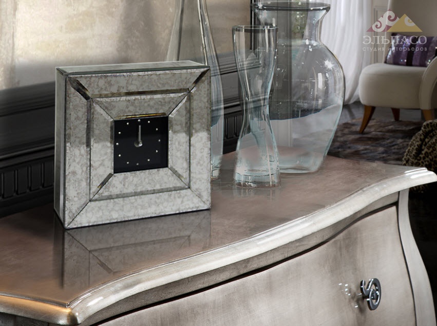 Высота:25.5 смЧасы настольные Schuller Pisa Sobremesa Art.374854 в раме из зеркал с фасками с покрытием "под старину", чёрный циферблат. Батарейки не входят в стоимость.