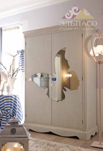 Классический шкаф с двумя распашными створками с встроенным зеркалом в форме бабочки, для детской комнаты из коллекции BUTTERFLY.
