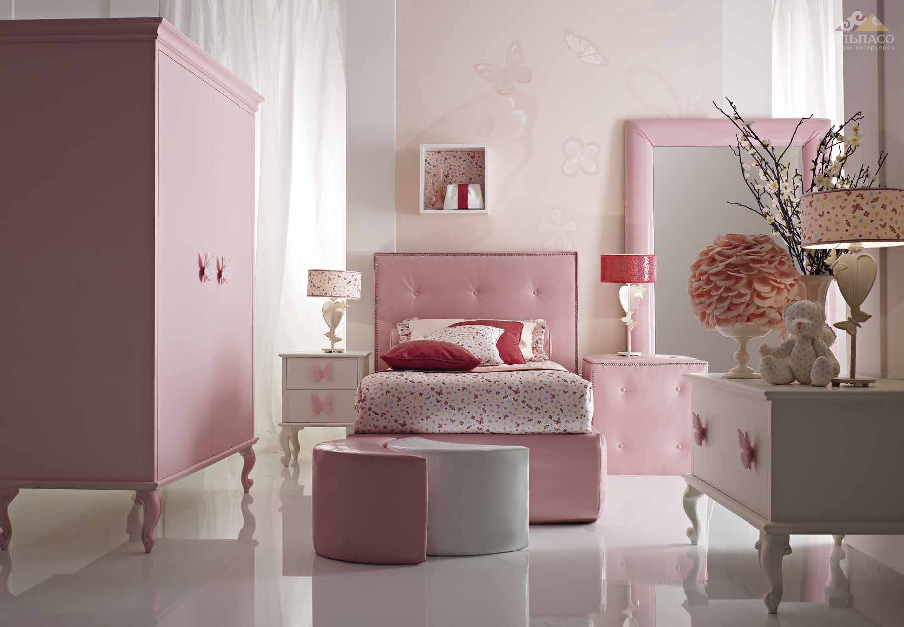 Двустворчатый розовый шкаф с двумя ручками, в классическом стиле для детской комнаты из коллекции Chantal.
