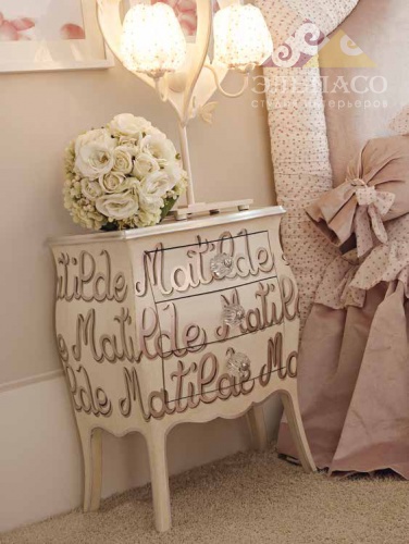 Прикроватная тумбочка с фигурным фасадом для детской комнаты из коллекции Shirley с тремя ящиками.