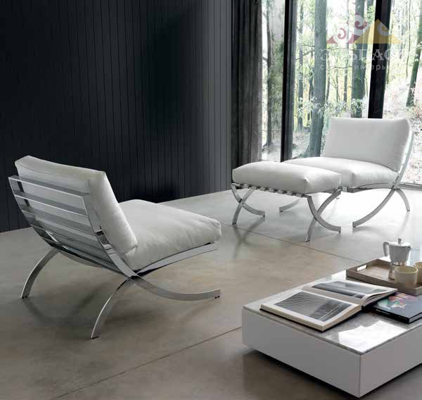 Высота:75 смКонструкция из хромированной стали. Сиденья доступно в других цветах и материалах. Структура находится в нейтральном термопластичном материале.Нескользящие концевые элементы. Сиденье и спинка в сертифицированной и гарантированной гусиной пудe с внутренней опорой из пенополиуретана. Полностью съемные крышки.