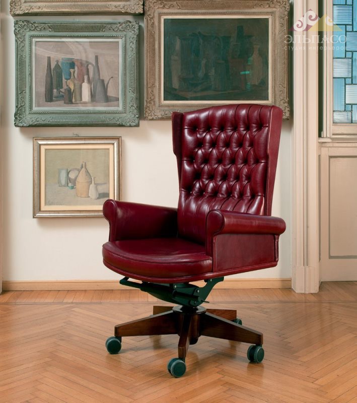 Изысканное поворотное кресло с регулировкой высоты сидения, предназначенное для конференций, из уникальной коллекции Empire от фабрики Mascheroni. Доступно с деревянной или стальной хромированной 5-спицевой базой на двойных нейлоновых роликах. Мягкая резина применяется для защиты нежных полов. Спинка украшена стежкой "Capitone". Каркас выполнен из массива березы и стали. Рама покрыта пенополиуретаном, полностью обтянутым натуральной кожей из ассортимента фабрики. Кресло оснащено поворотным механизмом Syncron. Каждый итальянский ручной продукт Mascheroni отмечен пластиной с выгравированной маркой «Mascheroni srl Made in Italy», которая подтверждает ее подлинность.
