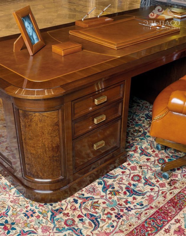 Стильный рабочий письменный стол с выдвижными ящиками из уникальной коллекции G20 от фабрики Mascheroni. Корпус выполнен из массива дерева и многослойной древесины разных сортов из ассортимента фабрики. Стол отделан тщательной полировкой ручной работы. Классическая линия офисной мебели для тех, кто любит элегантность и качество. Каждый итальянский ручной продукт Mascheroni отмечен пластиной с выгравированной маркой «Mascheroni srl Made in Italy», которая подтверждает ее подлинность.