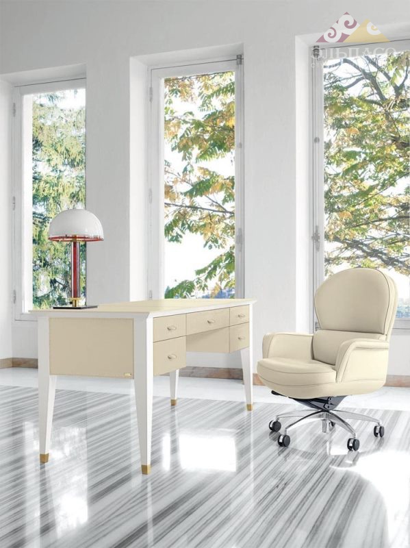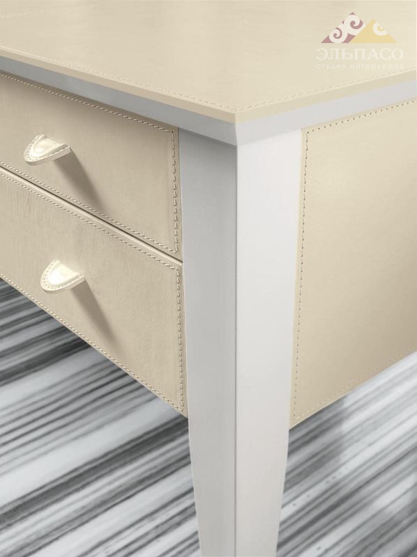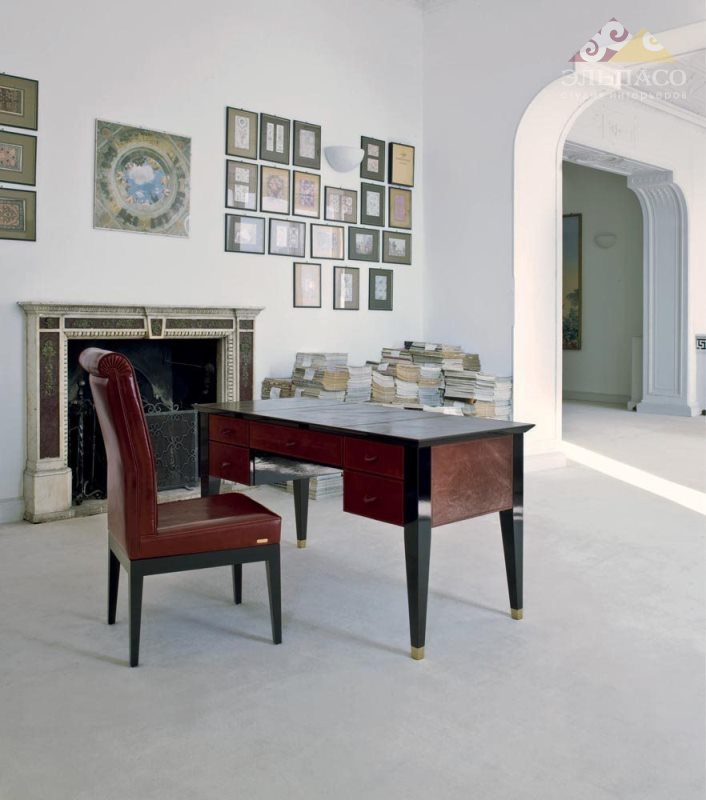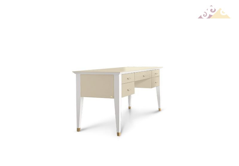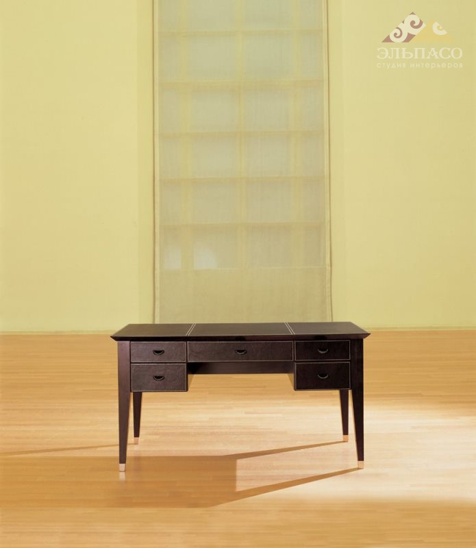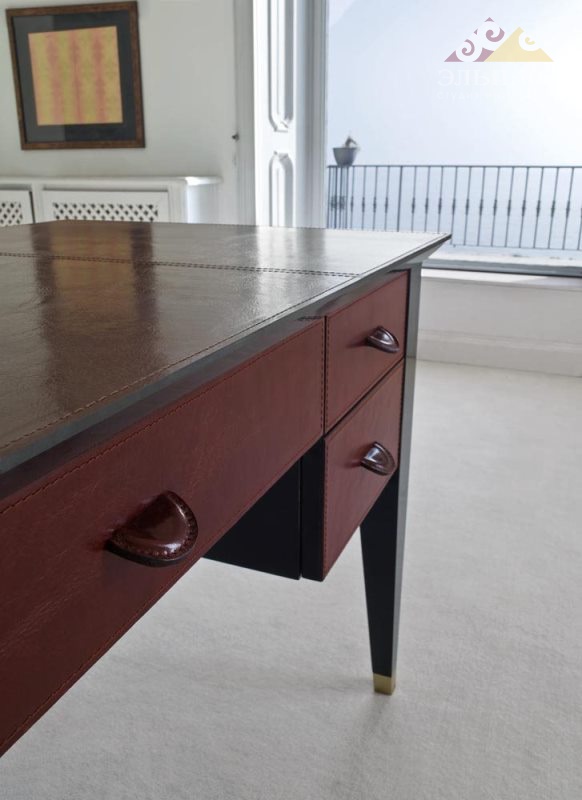 Великолепный письменный стол прямоугольной формы с пятью выдвижными ящиками из уникальной коллекции S2001 от фабрики Mascheroni. Корпус выполнен из массива бука покрытого натуральной кожей из ассортимента фабрики. Декоративные швы могут быть выполнены в другом цвете. Ручки ящиков так же отделаны кожей. Металлические ножки декорированы бронзовым покрытием. Каждый итальянский ручной продукт Mascheroni отмечен пластиной с выгравированной маркой «Mascheroni srl Made in Italy», которая подтверждает ее подлинность.