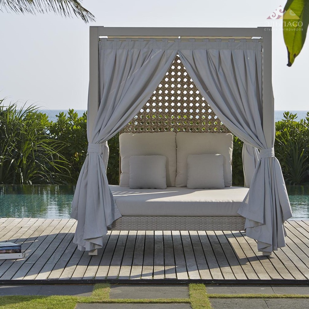 Роскошная садовая кровать HEART из ротанга с балдахином от Skyline Design. Этот идеальный вариант для сада предназначен для того, чтобы сделать отдых на свежем воздухе наиболее комфортным и приятным. Уникальная конструкция кровати сочетает в себе элементы классического и современного дизайна. Легкий балдахин защищает от ветра и насекомых, а мягкий матрас позволяет удобно разместиться на кровати. Кровать выполнена из синтетического волокна REHAU, на алюминиевом каркасе. Модель дополнена матрасом и подушками со съемными чехлами из ткани SUNBRELLA. Выполнена кровать вручную из синтетических волокон «REHAU» на металлическом каркасе, позволяющих использовать предмет в любую погоду. Защита от воздействия ультрафиолетовых лучей. В комплекте идет съемный матрас, подушки из ткани SUNBRELLA. Мебель 100% экологичная.