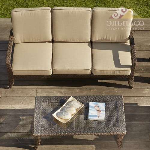 Модель MADISSON украсит ваш дом или террасу. Изготовлена из синтетического волокна REHAU, на алюминиевом каркасе. Обивка подушек и сидений, выполнены из ткани SUNBRELLA, которая легко чистится и не впитывает влагу. Складская программа.