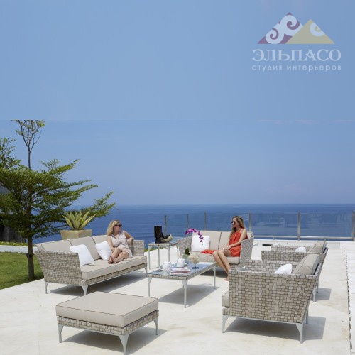 Стильный, износостойкий и комфортный вариант мебели для отелей, гостиниц, санаториев или загородных домов. Основание - РОТАНГ, влагоустойчивая обивка подушек. Фабрика-изготовитель известна своей мебелью из синтетического волокна, внешне похожего на ротанг. Синтетическое волокно немецкого производства Viro или Rehau выдерживает негативное воздействие окружающей среды (осадки, ультрафиолет). Структура изготовлена из алюминия толщиной 1,4 — 2,4 см. Несколько вариантов по типу плетения и цвету ротанга. Складская программа.