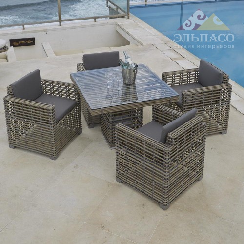 Столовая CASTRIES прекрасно впишется в интерьер любого помещения. Модель выполнена из искусственного ротанга ручного плетения на легком алюминиевом каркасе. Высокопрочные волокна полностью защищают изделие от непогоды и солнечного излучения. Обивка подушек, выполнена из ткани SUNBRELLA, которая не впитывает влагу и легко чистится. Складская программа.