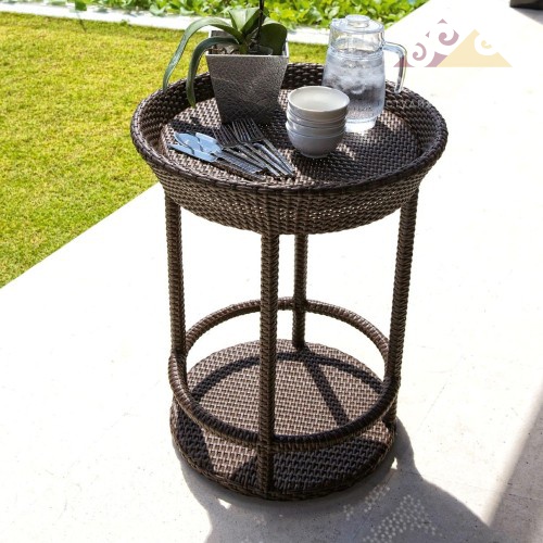Сервировочный стол CALLY изготовлен из искусственного ротанга ручного плетения, на алюминиевом каркасе. Модель может выполнять функции кофейного или журнального стола. Складская программа.