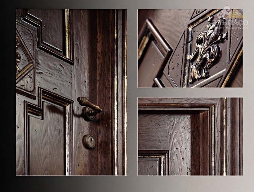 художественное золочение.В стоимость базовой  комплектации включены:полотно,карточные петли,замок,добор,уплотнитель,наличник,коробка.