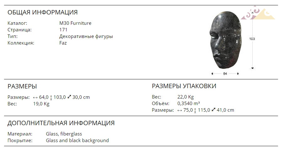 Высота:103 смДекоративная фигура Schuller Faz Art.832128. Маска с мозаикой из осколков чёрного зеркального стекла на чёрном фоне.