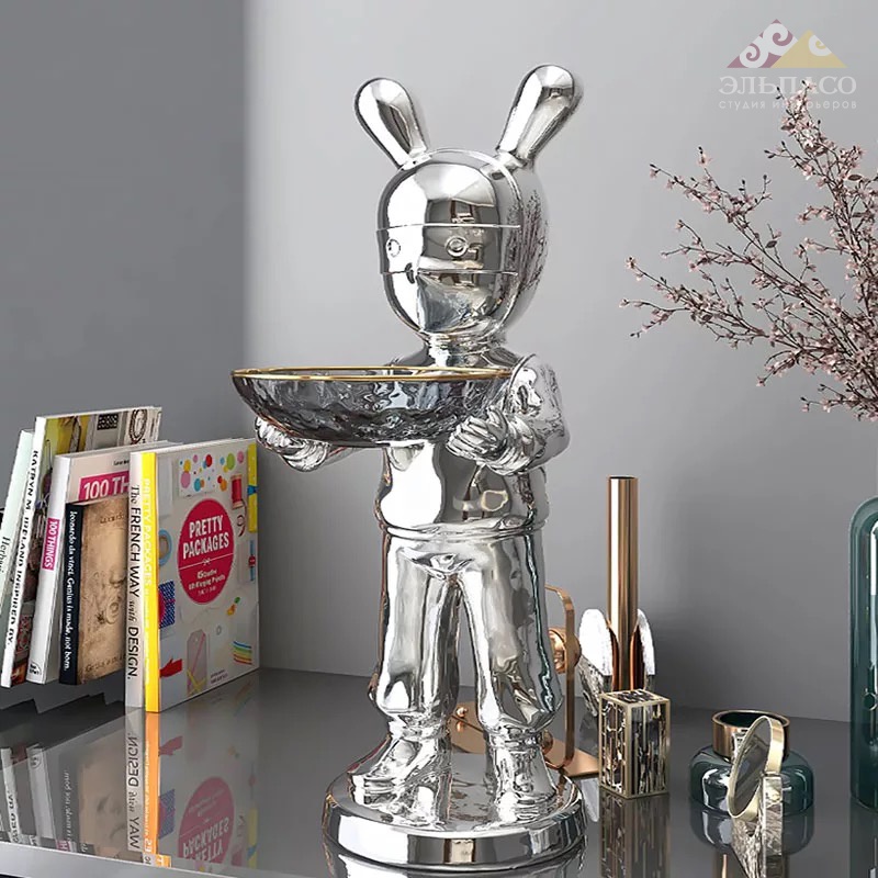 Декоративная фигура, мальчик с ушами, держит стеклянный поднос.