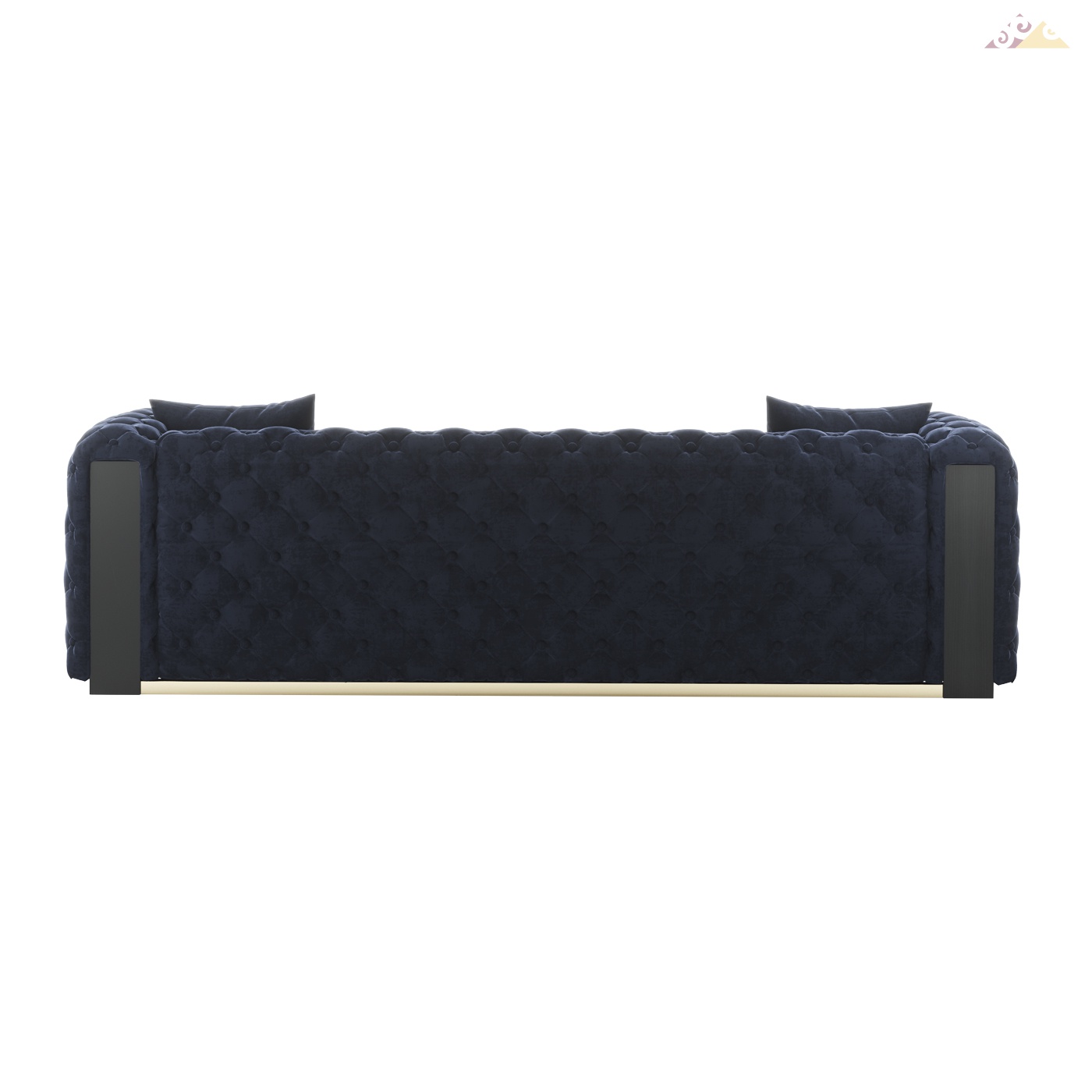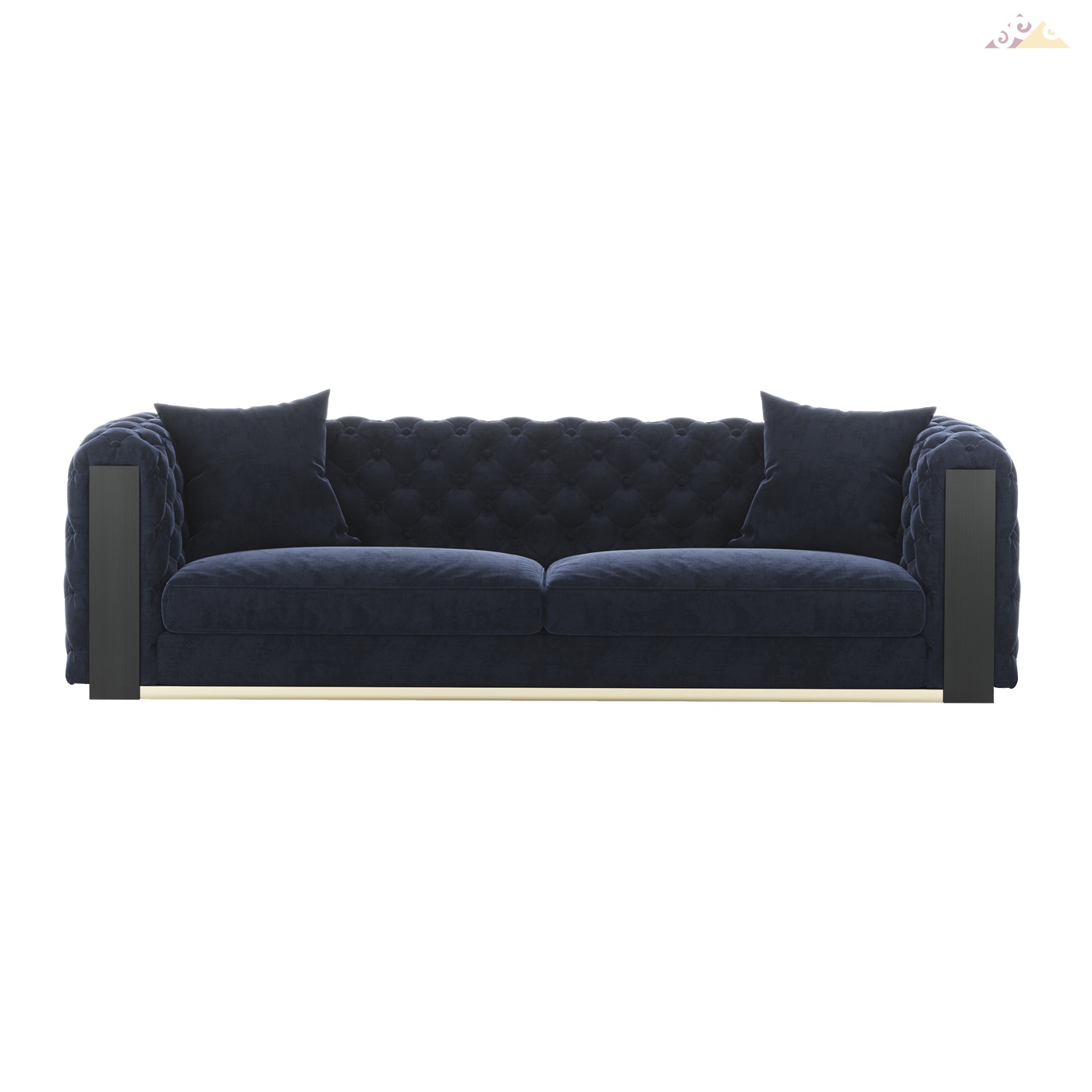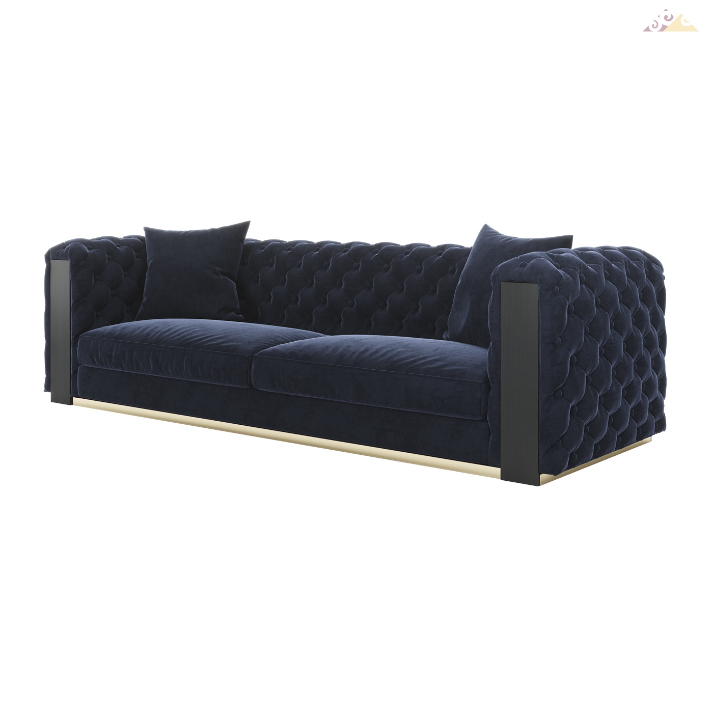 Высота:75 смТрехместный синий диван JEAN с декоративной спинкой в отделке кнопками, с деревянными вставками. Основание дивана из нержавеющей стали - золотого цвета. Доступен к заказу в других цветах ткани, кожи и эко-кожи. Металлическое основание доступно в цвете хром, черный никель, медь, каленого железа.