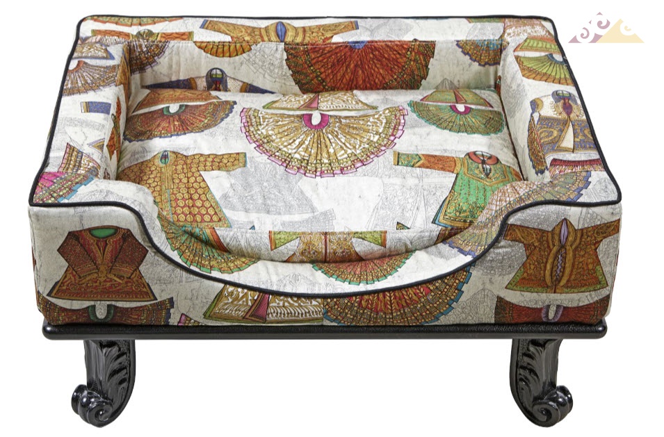 Уникальная, яркая и стильная лежанка для любимого домашнего питомца. Модель декорирована плотным износостойким текстилем, с сюжетным принтом. Деревянные ножки выполненны в кракелюре.