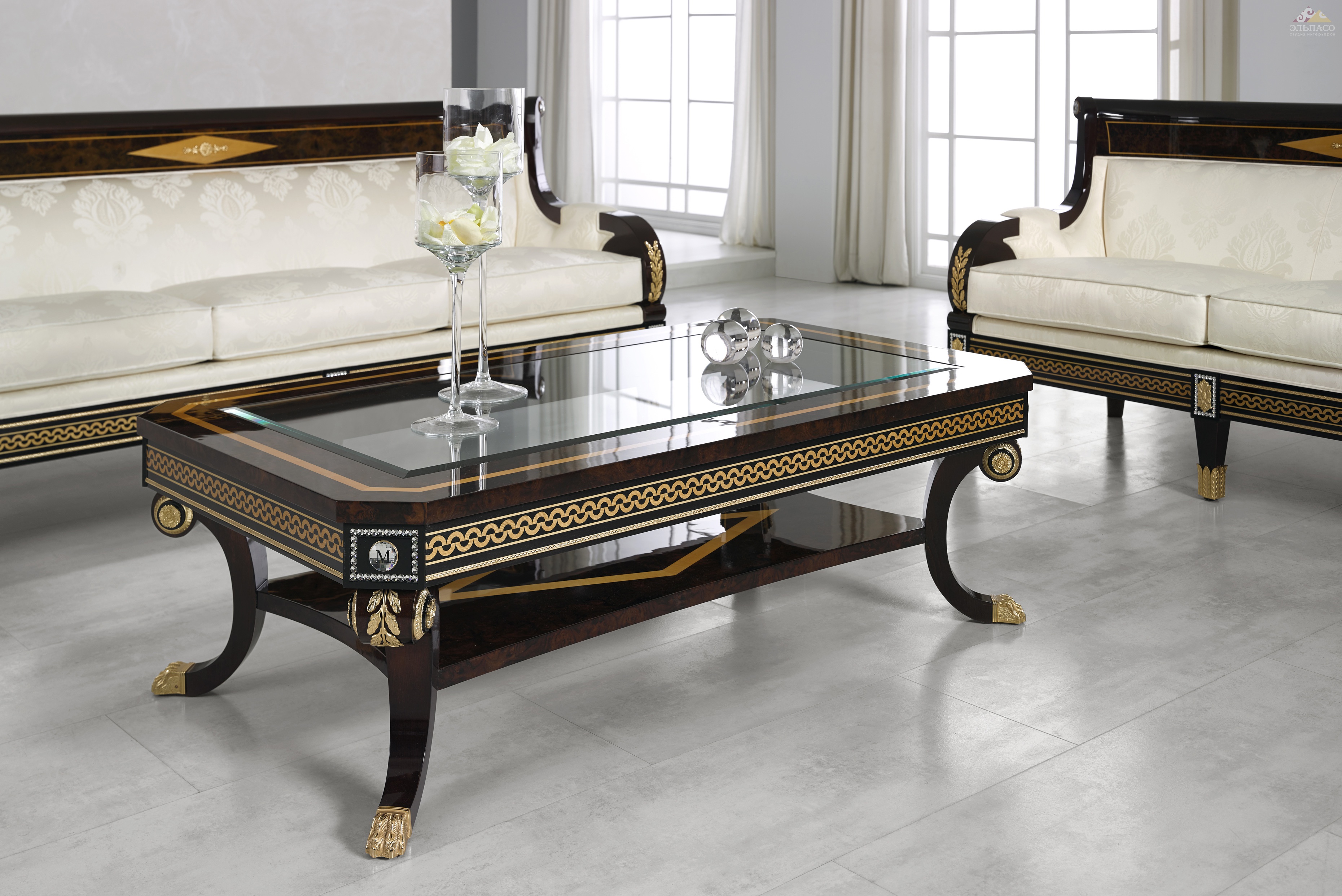 Высота:49 смЭлегантный журнальный столик Mariner Аrt.2370 прямоугольной формы, с четырьмя гнутыми ножками и полочкой. Каркас модели изготовлен из массива дерева, покрытого деталями натурального шпона сикоморы или шпоном грецкого ореха. Поверхности полированы вручную, отделаны черным или прозрачным лаком. Корпус декорирован бронзовыми литыми узорами, покрытыми сусальным золотом. Столешница, на боковых гранях, украшена кристаллами Swarovski. Изящность, стиль, уникальность.