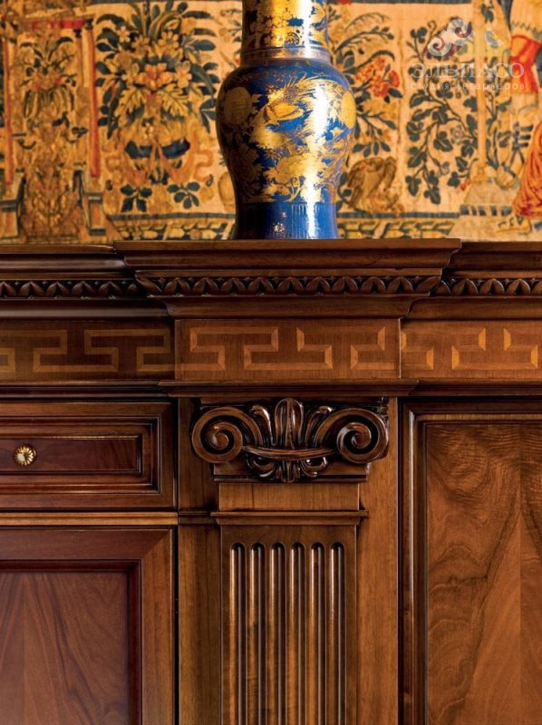 Элегантный буфет с распашными дверцами и выдвижными ящиками из уникальной коллекции G7 от фабрики Mascheroni. Корпус выполнен из массива дерева и многослойной древесины разных сортов из ассортимента фабрики. Буфет отделан тщательной полировкой ручной работы. Ручки выполнены из сплава латуни. Фасад украшен резными элементами. Классическая линия офисной мебели для тех, кто любит элегантность и качество. Каждый итальянский ручной продукт Mascheroni отмечен пластиной с выгравированной маркой «Mascheroni srl Made in Italy», которая подтверждает ее подлинность.