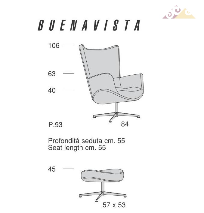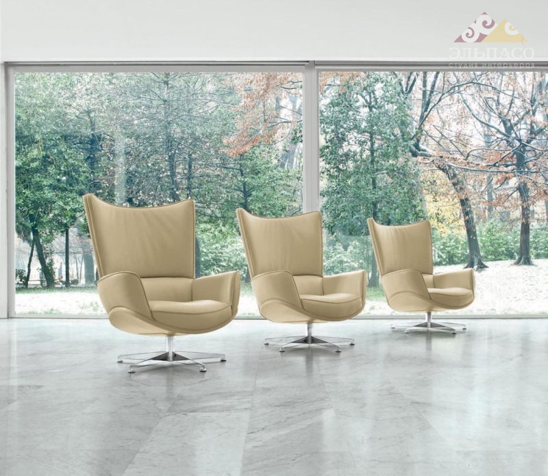 Элегантное поворотное релакс-кресло с высокой спинкой и мягкими подлокотниками, из уникальной коллекции Buenavista от фабрики Mascheroni. 5-спицевое основание из высокопрочной стали, без колесиков. Каркас выполнен из массива березы. Рама покрыта пенополиуретаном с дакроновым покрытием, обтянутым натуральной кожей из ассортимента фабрики. По запросу кресло поставляется с подставкой для ног. Отличный комфорт, элегантность и изысканный дизайн. Каждый итальянский ручной продукт Mascheroni отмечен пластиной с выгравированной маркой «Mascheroni srl Made in Italy», которая подтверждает ее подлинность.