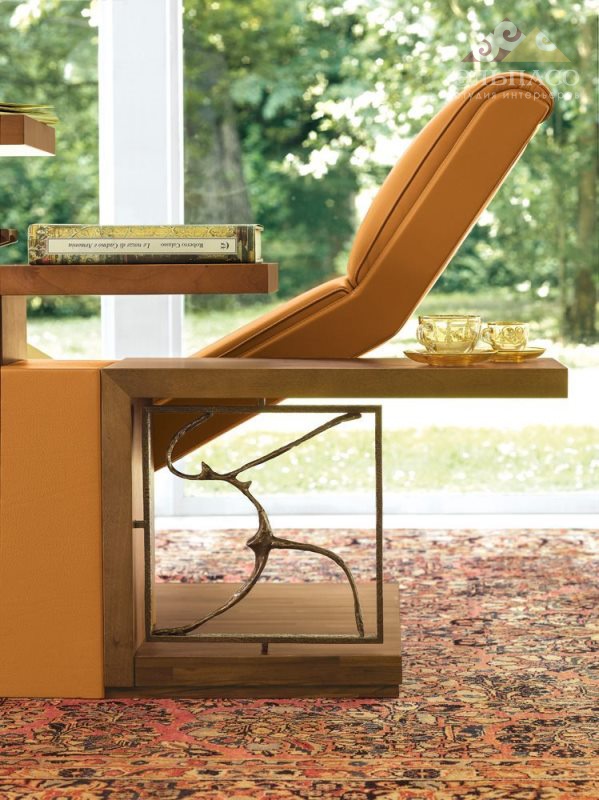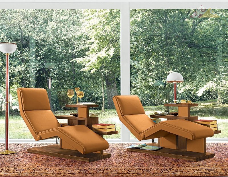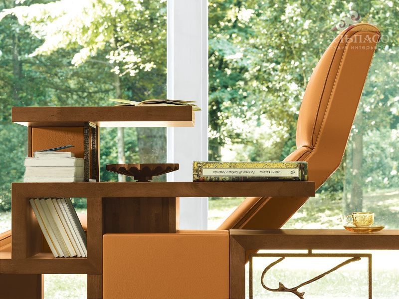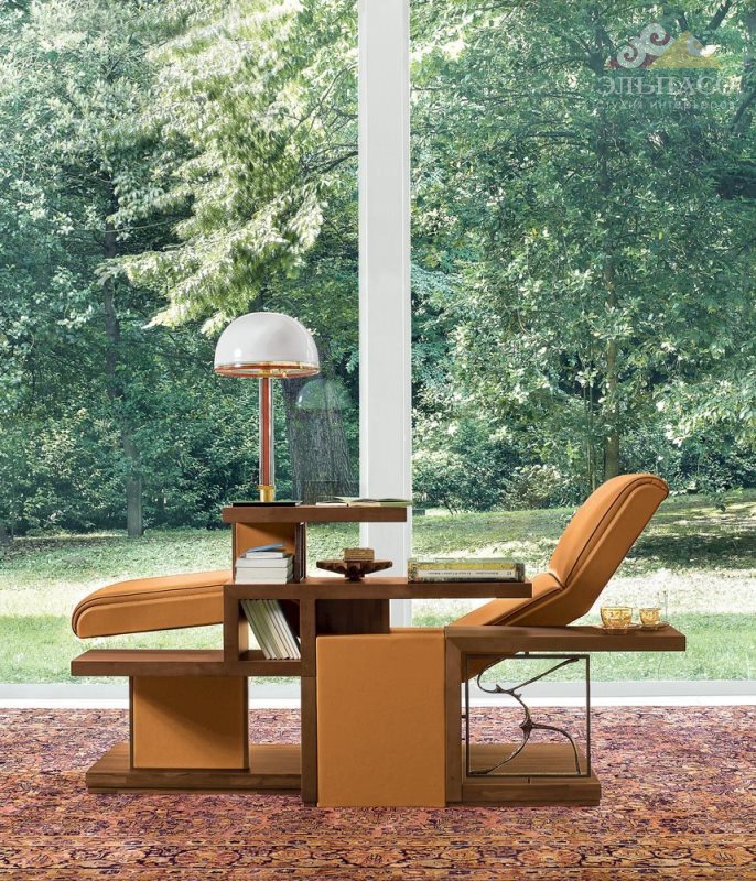 Красивое релакс-кресло, из уникальной коллекции Volare от фабрики Mascheroni, выполнено в виде шезлонга с приставкой из полочек. Каркас изготовлен из массива березы и высокопрочной стали. Сиденье и спинка из недеформируемого пенополиуретана, полностью обтянуты натуральной кожей. Кресло закреплено на стальном валу, который позволяет ему не касаться пола, что придает ощущение полета. Требуемый наклон можно отрегулировать с помощью ручки управления на боковом столике. Технология запатентованная Mascheroni. Каждый итальянский ручной продукт Mascheroni отмечен пластиной с выгравированной маркой «Mascheroni srl Made in Italy», которая подтверждает ее подлинность.