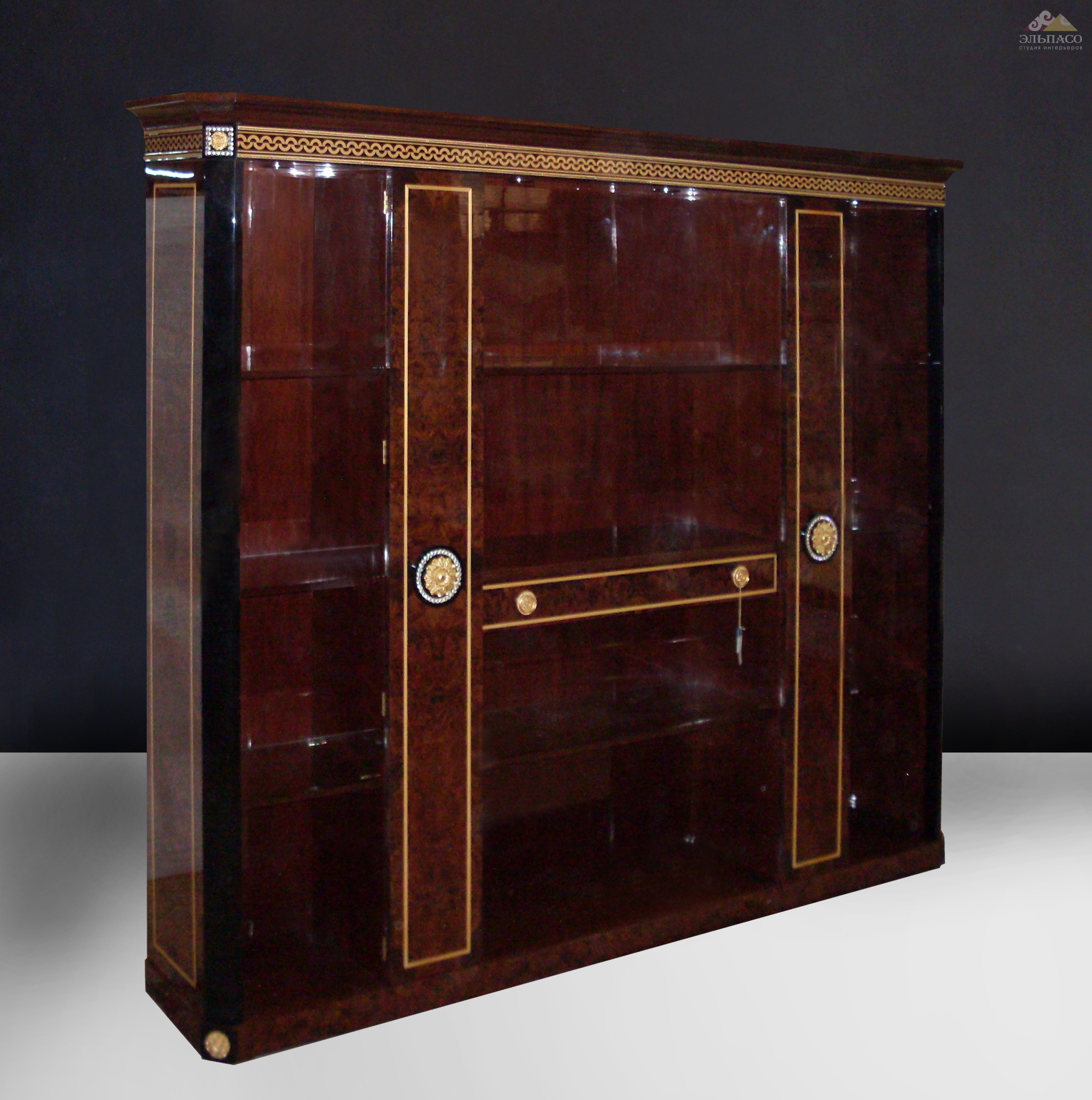 Высота:205 смВеличественные книжные полки Mariner Аrt.2419 с выдвижным ящиком. Каркас модели изготовлен из массива дерева, покрытого деталями натурального шпона сикоморы или шпоном грецкого ореха. Поверхности полированы вручную, отделаны черным или прозрачным лаком. Фасад декорирован бронзовыми литыми узорами, покрытыми сусальным золотом, и украшен кристаллами Swarovski. Красота, роскошь, практичность.