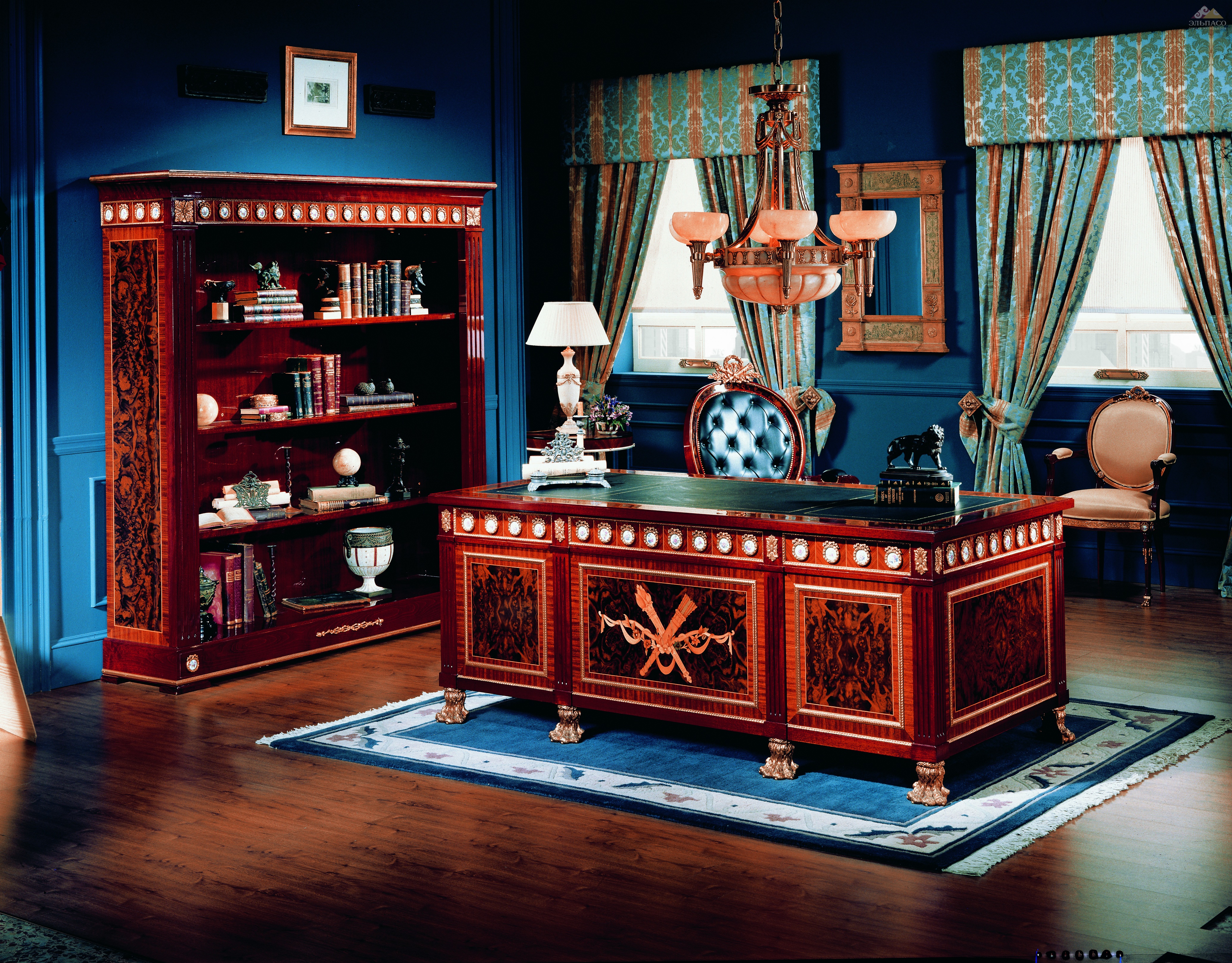 Элегантные книжные полки Mariner Аrt.5113 с тремя полочками. Каркас модели изготовлен из массива дерева, покрытого натуральным шпоном грецкого ореха, и маркетри из дерева бубинги и шпона оливы. Поверхности полированы вручную, отделаны прозрачным лаком. Корпус декорирован бронзовыми литыми узорами, покрытыми французским золотом. Боковые грани украшены фарфоровыми деталями в бронзовом обрамлении. Красота, роскошь, практичность.