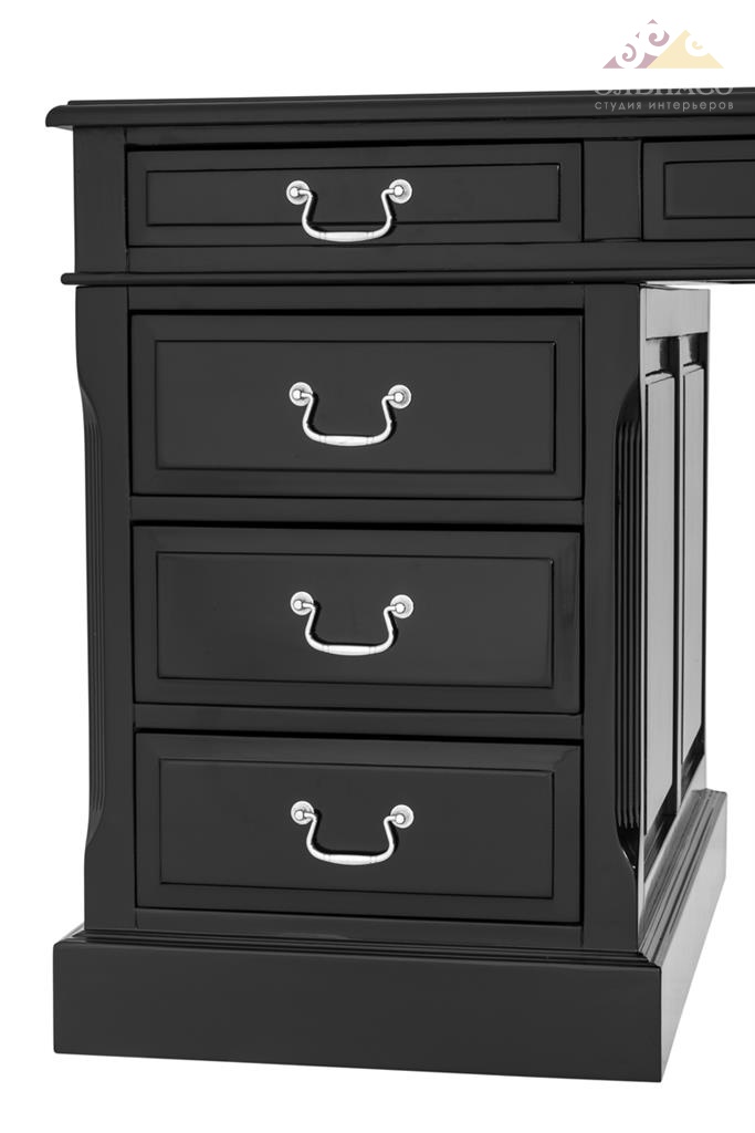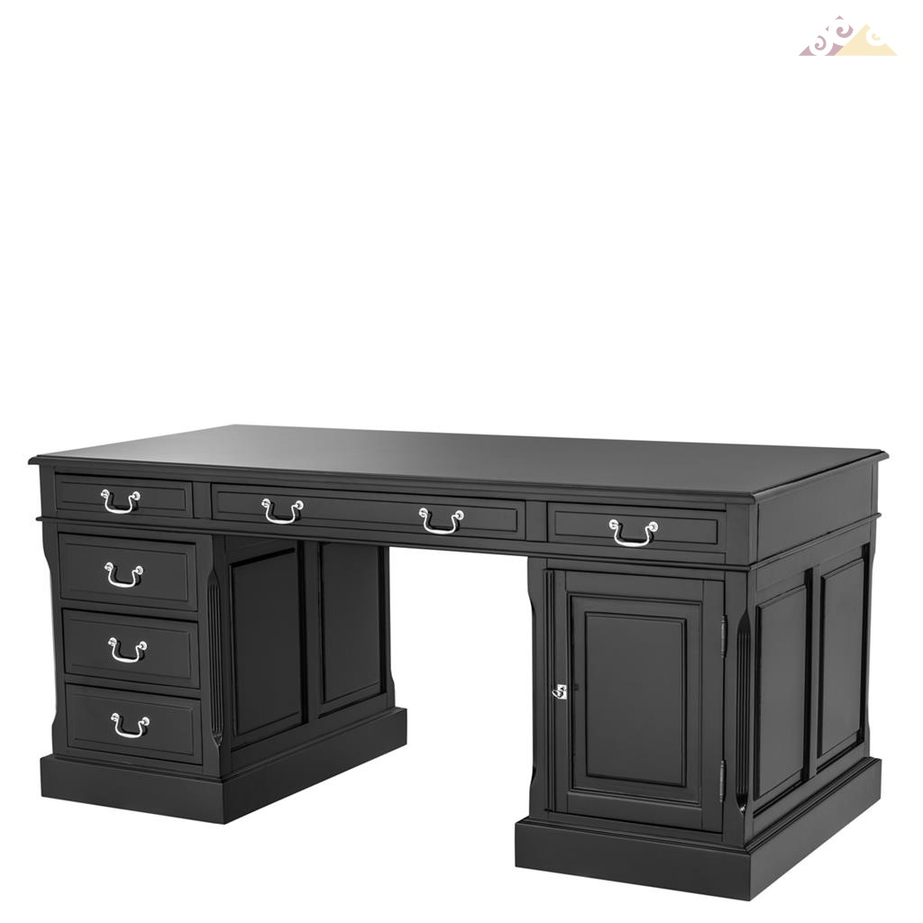 Письменный черный стол British фабрики Eichholtz, с шестью выдвижными ящиками и одной распашной дверцей.